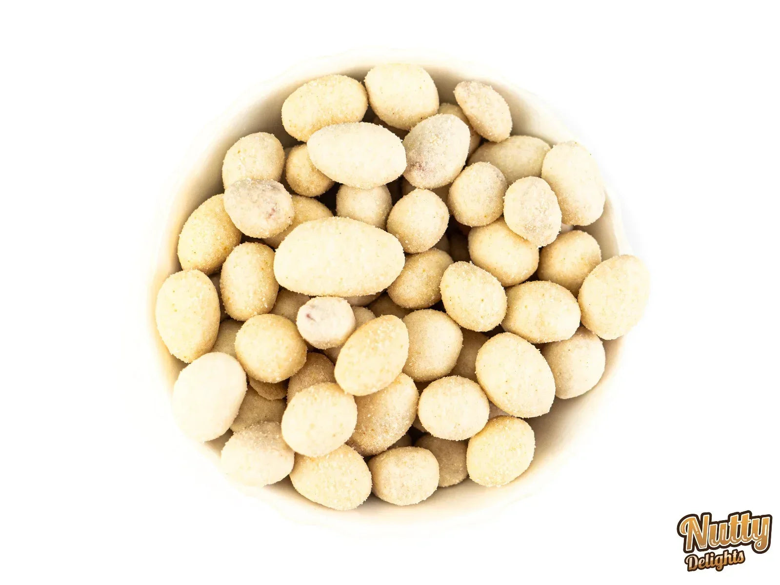 If you're a savory nut then look no further than the Shanghai Coated Peanut. This is for you the garlic and onion fans out there. This bone-white color nut has a crispy cereal exterior that is covered in garlic and onion seasonings for the perfect savory nut.