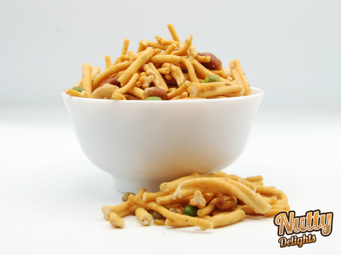 A bold and refreshing take on the classic, Bombay Mix Lemon & Lime combines the perfect crunch of gram flour noodles, lentils, and peanuts with a tangy citrus twist. The vibrant blend of spices is enhanced by the zingy notes of lemon and lime, creating an irresistible balance of heat and zest. Perfect as a snack on the go, with your evening tea, or as a party favorite, this mix delivers a burst of flavor in every bite. With the added benefits of protein and fiber from lentils and nuts, it’s a snack that’s both delicious and satisfying.