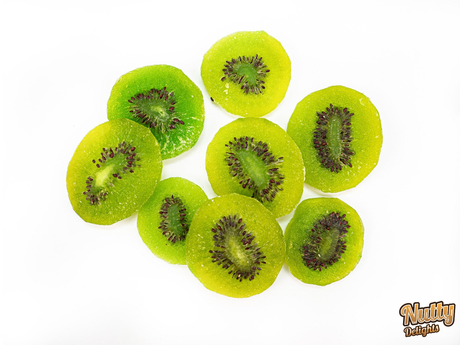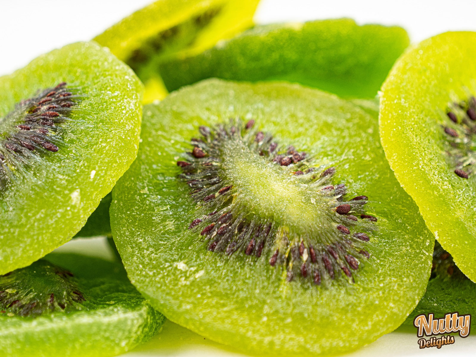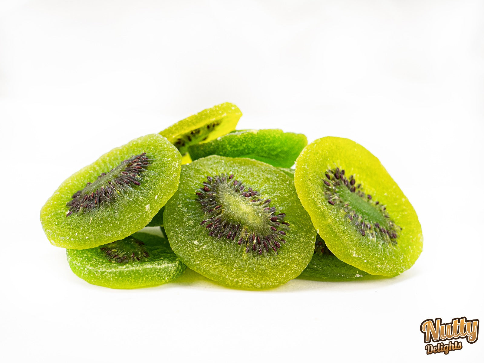 Dried kiwi slices have a sharp and sweet flavour that adds a tangy punch to your snack time or lunch break. Dried kiwi slices provide a blast of Vitamin C that is higher in concentration than an orange by a mile. They also contain more potassium than bananas do.