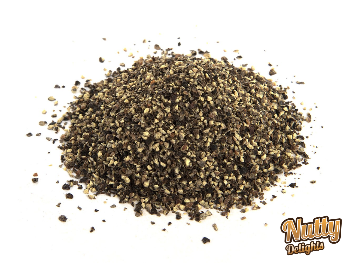 Cracked black pepper, made from coarsely ground whole peppercorns, adds a robust and slightly spicy flavor to dishes. Its bold, aromatic qualities make it ideal for seasoning meats, soups, and salads. Use it to create a flavorful crust on steaks or to enhance the taste of roasted vegetables. Sprinkle it over pasta, eggs, or even fresh fruit for an unexpected twist. Its versatile and intense flavor profile elevates both everyday meals and gourmet recipes.