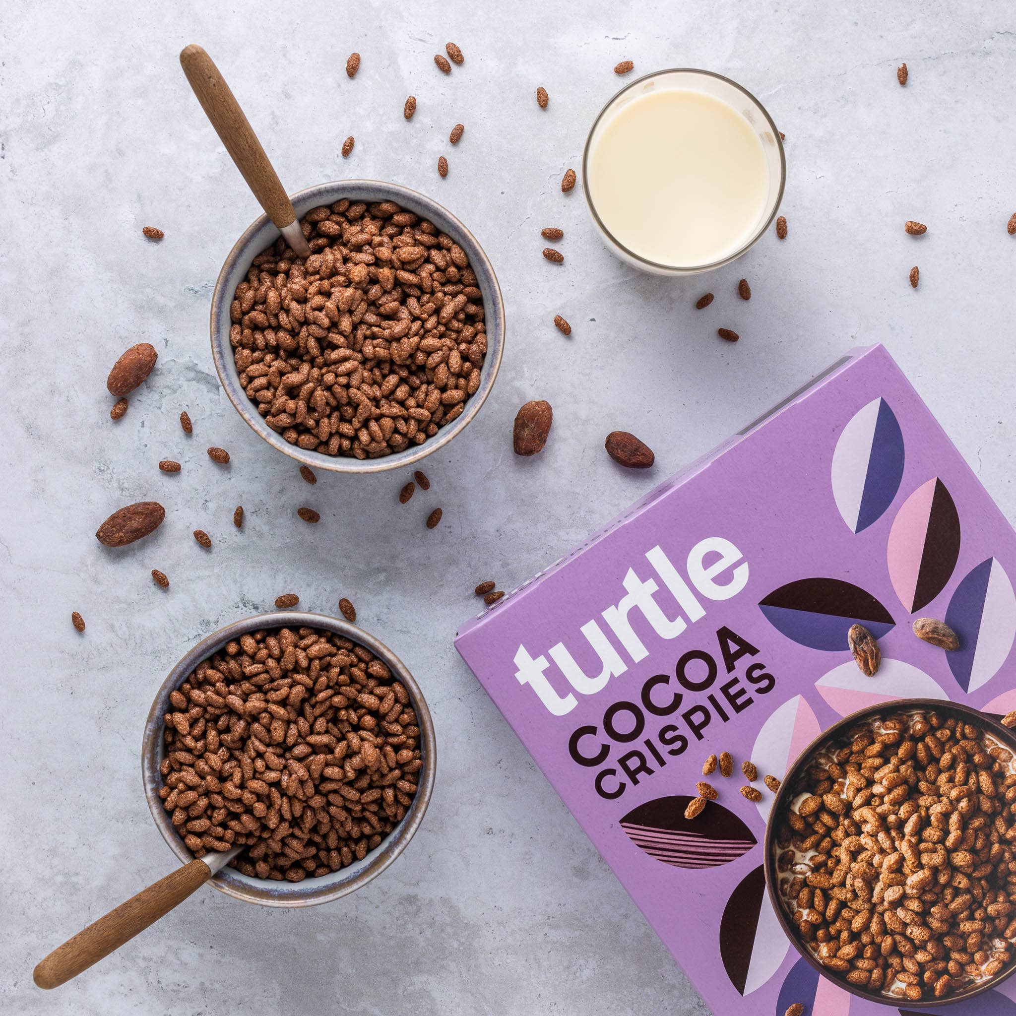 Indulge in a delicious start to your day with Turtle - Better Breakfast's Organic Cocoa Crispies. Our breakfast cereal is made with ethically sourced ingredients, ensuring a guilt-free treat for your morning routine. Packaged in recyclable and recycled materials, we're committed to maintaining a sustainable environment. Enjoy the rich, organic cocoa flavor, with less sugar and no palm oil. Perfect for every taste, every craving, every day. Taste the goodness of our cereals, responsibly produced for the conscious consumer.