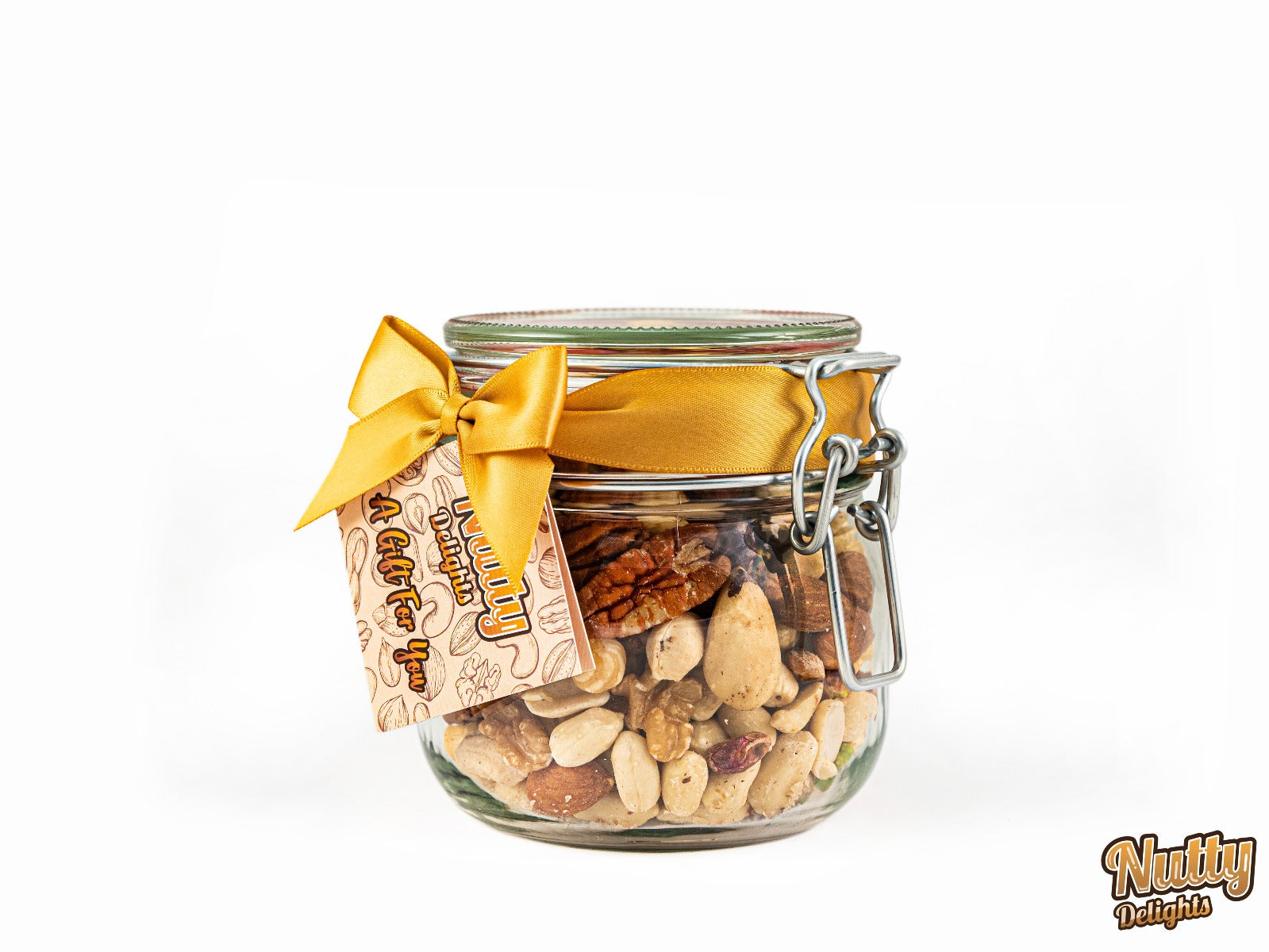 That’s why we’re introducing our customizable mason jars. You can get whatever nut mixture you desire in these reusable jars. Packed to the brim with flavor which not only tastes amazing, but on the outside these mason jars look super cool and can be reused for a plethora of things.