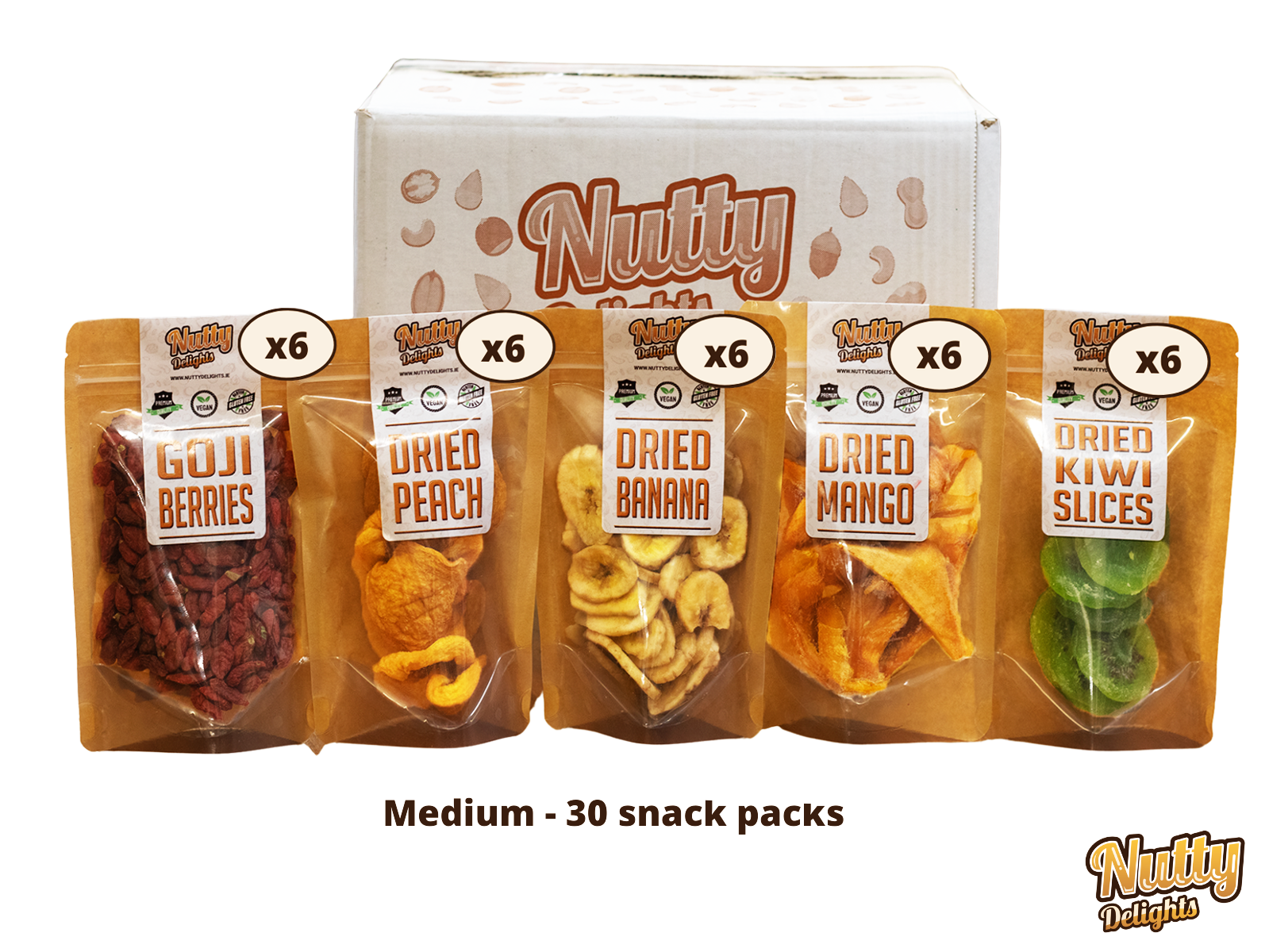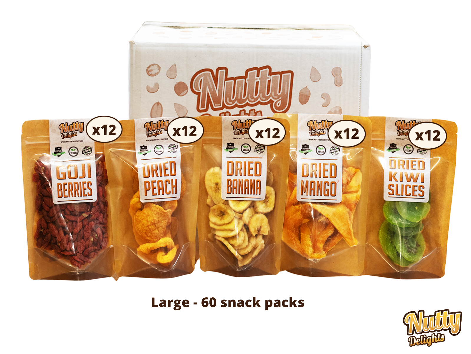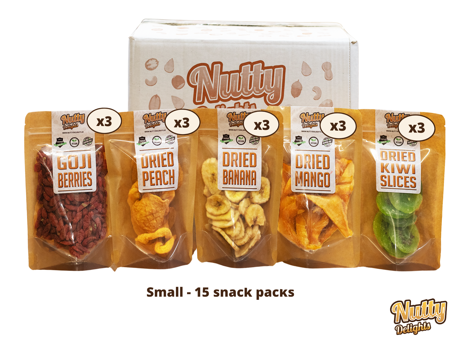 In this bundle we have added goji berries - the perfect snack to add to your breakfast cereals or porridge or simply eat them directly from the pack! Our dried mango, kiwi and peach are the perfect dried fruit to snack on throughout the day. They may be dried fruit but they still hold a lot of juiciness and are still rich in delicious flavor! If you're looking for a bit of a crunch then dried banana chips are perfect for you! They taste great and have a great bite - add them to your breakfast or simply eat them straight from the pack like healthy chips!