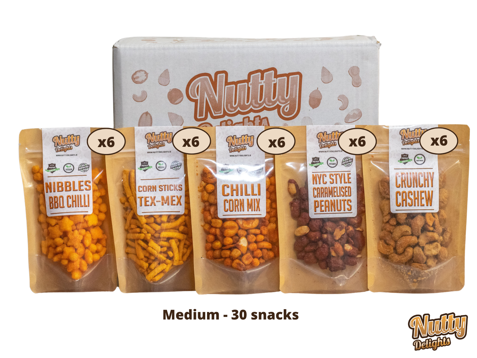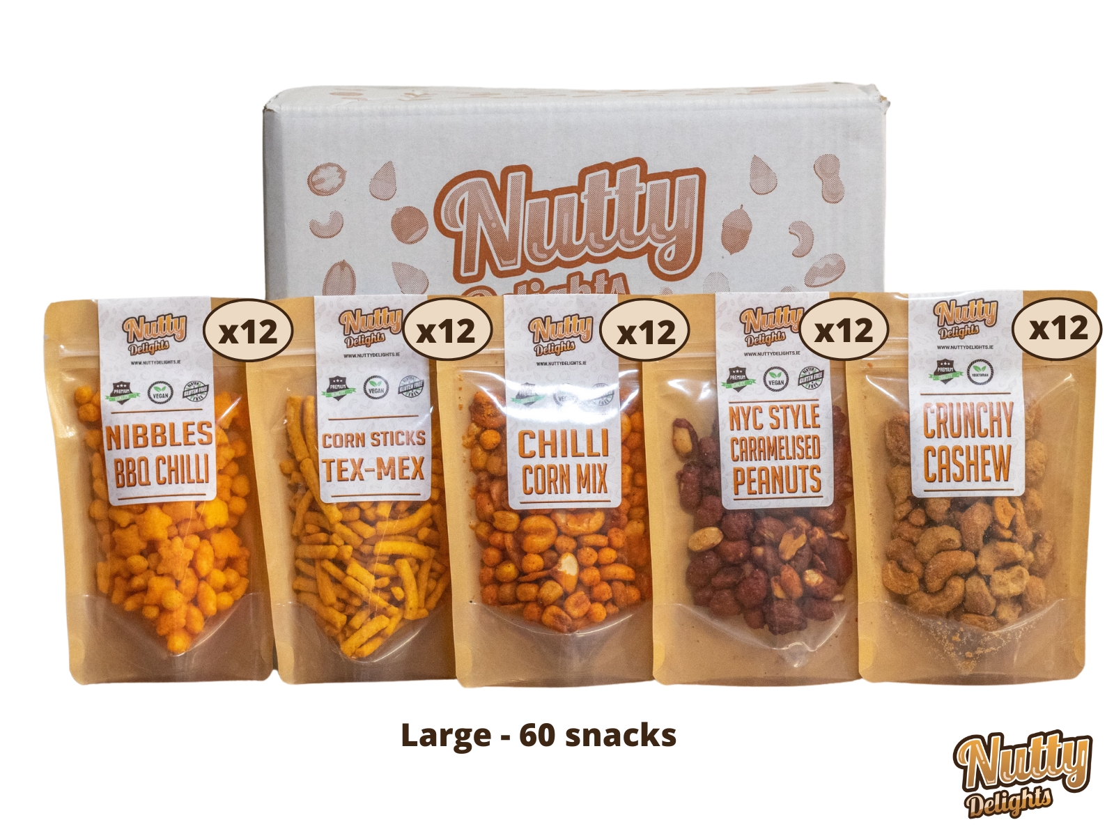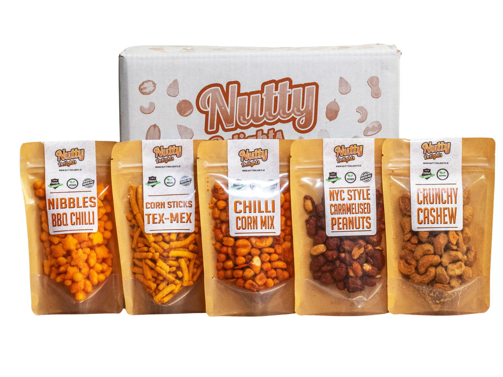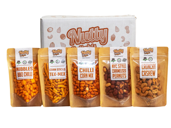 Picture this, it’s Friday afternoon after a long week in the office. You and your colleagues crack open a few beers to celebrate the weekend, and snack on this delicious snack bundle, perfectly created to accompany the rich flavors of beer. This bundle is sure to give you that Friday feeling! If you're a lover of snacks with a bit of heat, you will love our chili corn mix. Tex Mex is one of those flavors that goes down well with everyone, especially when beers are involved! In this mix we included our Tex Mex corn sticks in this bundle. Our nibbles are another snack perfect for happy hour, these are addictive - once you start snacking, it's impossible to stop! Of course we had to include some nuts in this bundles - we are nuts about nuts after all! Our snackologists decided that our NYC caramelized peanuts and crunchy cashews suited best for this bundle - and they were right!