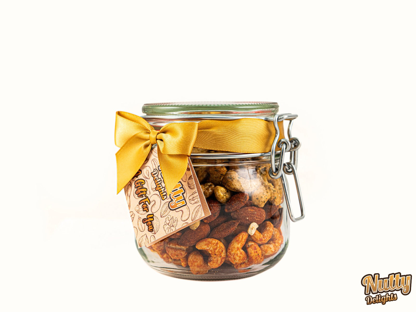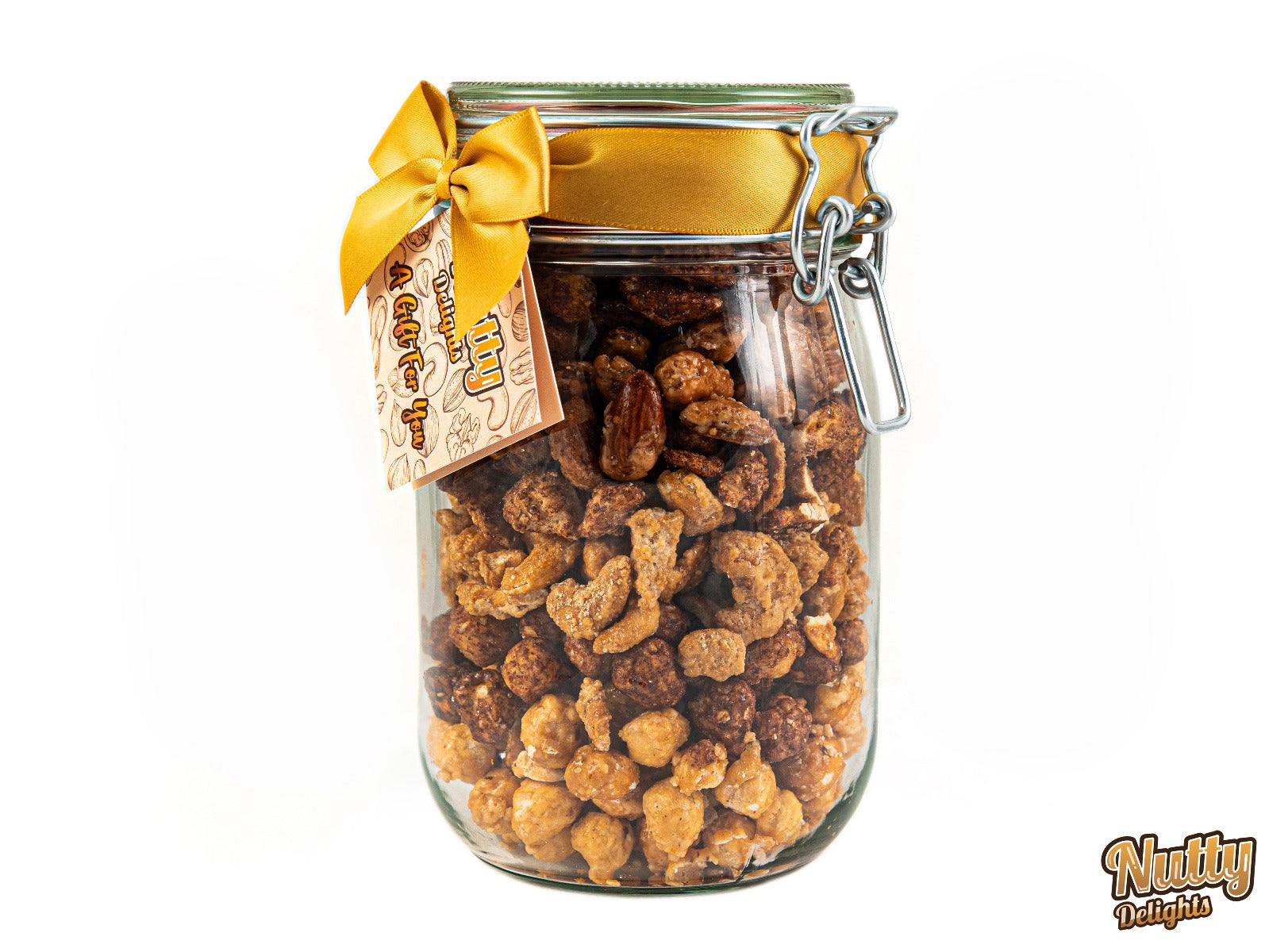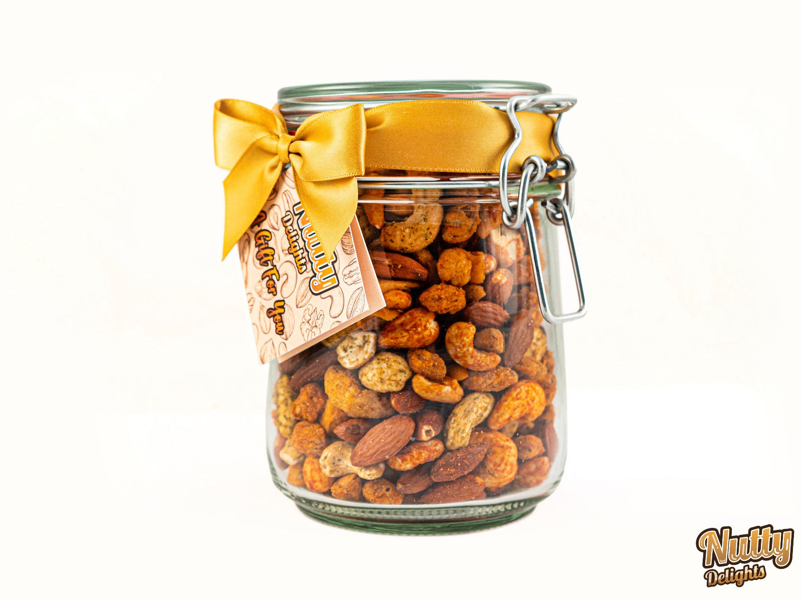 This jar full of gourmet nuts makes for a wonderful birthday, anniversary, or any occasion present. Not to mention that the nuts inside this jar are brimming with flavor.
