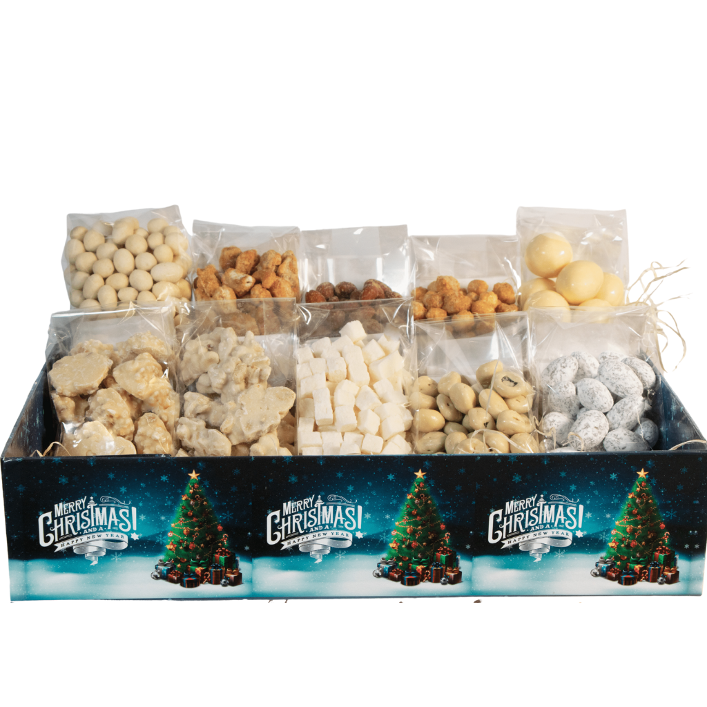 We're dreaming of a White Christmas Delights hamper. Packed to the brim with a mix of delicious white treats and some of our favourites. From snowy chocolate almonds to coconut cubes - there are tones of white goodies in this hamper to get you in the Christmas spirit!