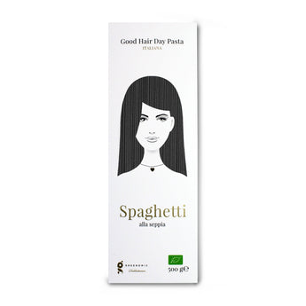 Original Italian organic spaghetti refined with real squid ink, made in the Umbria region using the traditional bronze process “al bronzo”.