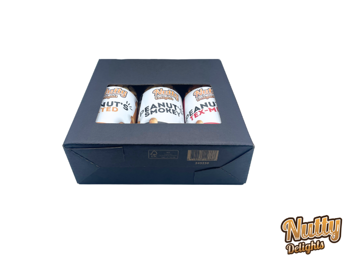 This Pint pack comes with 3 Peanut flavour. In this pack you will find: Smokey Peanuts, Salted Peanuts, Tex Mex Peanuts.