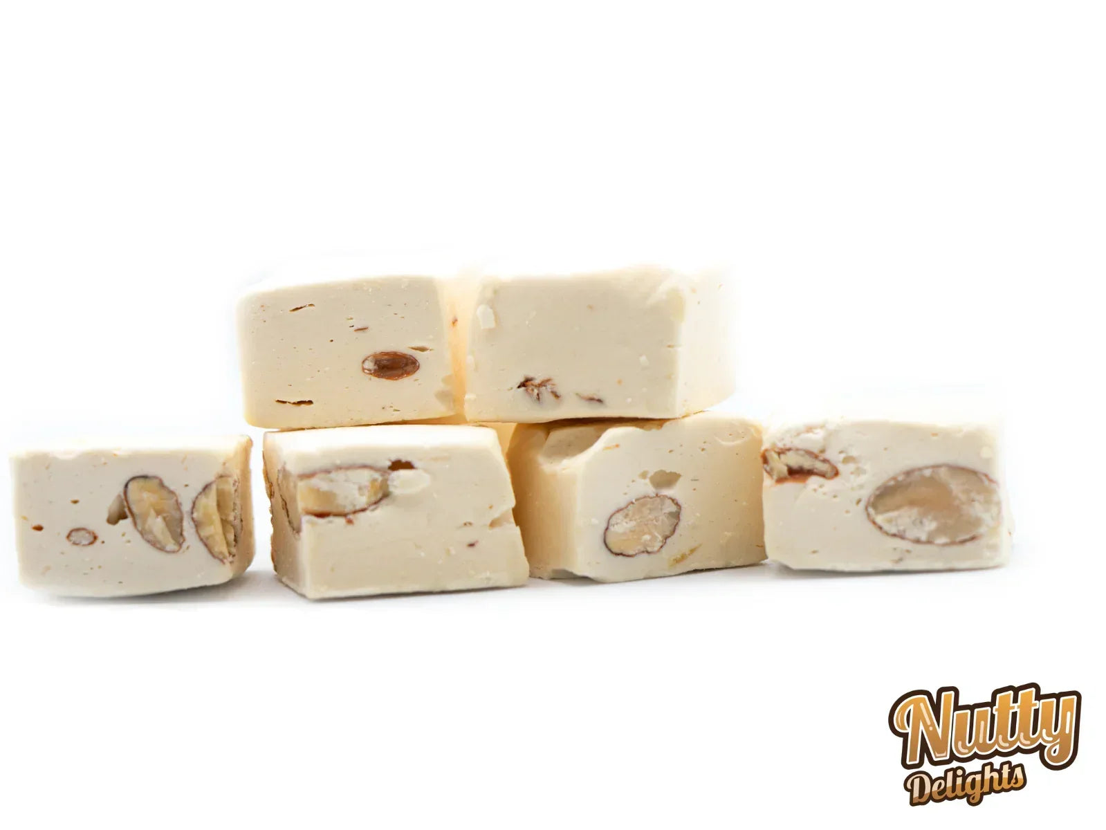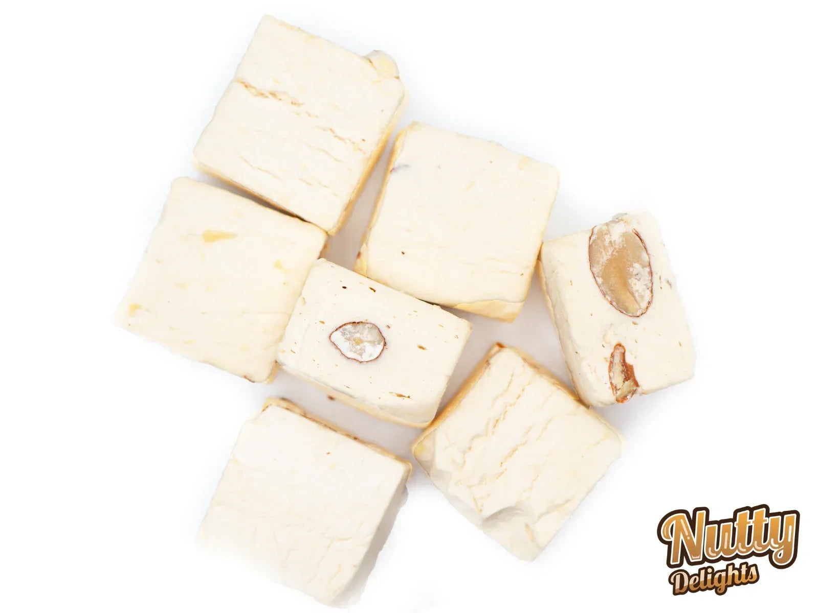 If you're a lover of sweet treats, say hello to your new favourite snack! This delicious sweet nougat is packed with flavour and has a great chew! To top off the greatness of this snack it is also filled with delicious almonds for some crunch. Combine the flavours together and your taste buds are in for a real treat! The perfect snack for a cozy evening if you're craving something sweet!