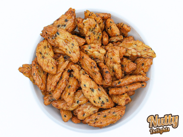 Asian rice crackers refined with soy sauce. Very similar to our other Moon Crackers but these guys are mini and adorable. Bite sized snacks are always the best! Easy to fit in your bag/ lunchbox when you're snacking on the go. Soy sauce and a chili mix have lent these crackers that yummy, lively taste you are experiencing when you eat one of these delights. These pair beautifully with Asian beer, next time you have friends over go all out by impressing them with this snack!