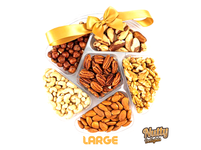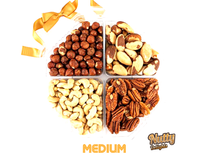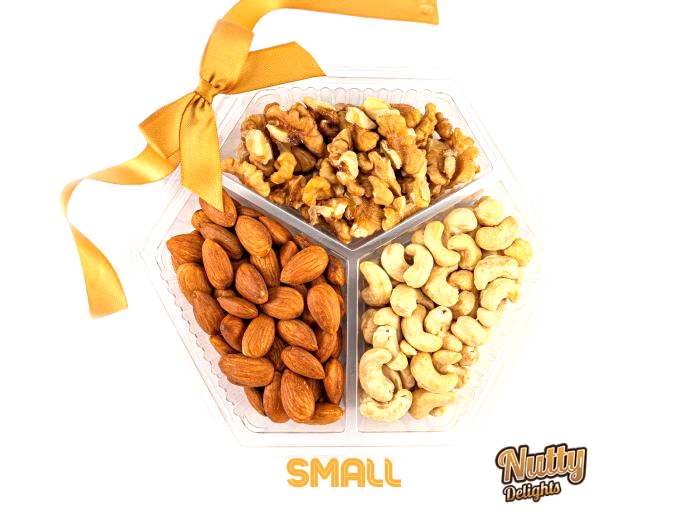 This mix comes in three sizes. Small - 3 varieties of nuts. Medium - 4 varieties of nuts. Large - 6 varieties of nuts.