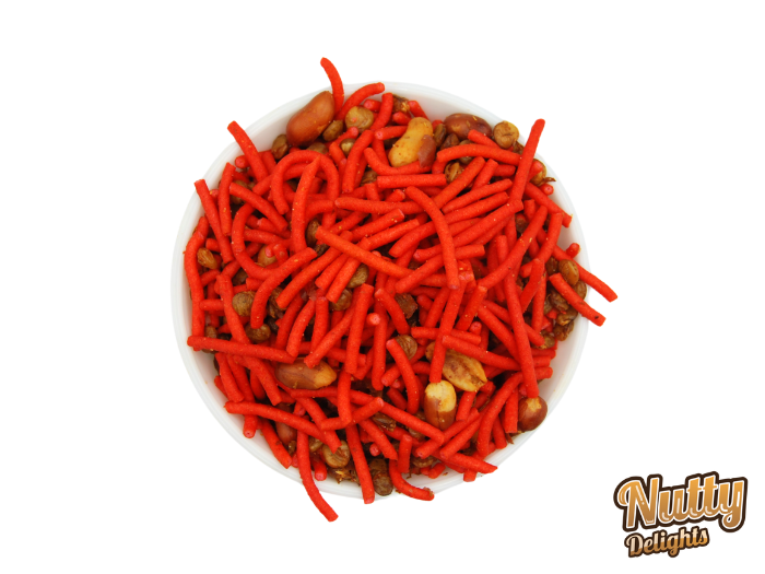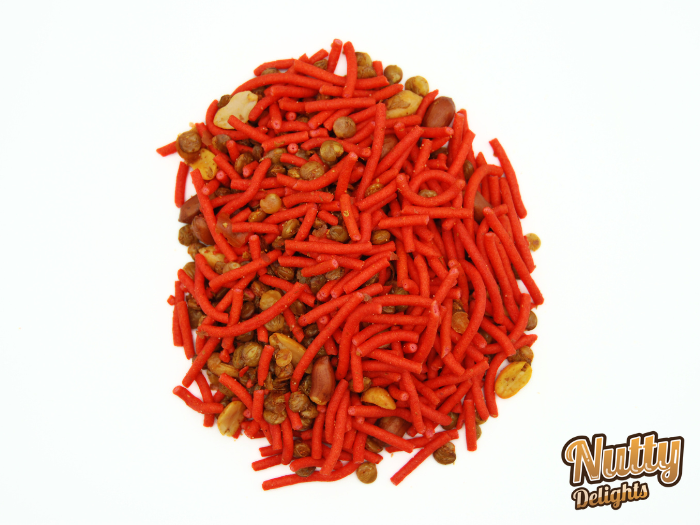 Turn up the heat with Hot Bombay Mix – a bold and spicy twist on the classic favorite. This fiery blend of crispy gram flour noodles, crunchy lentils, and peanuts is coated in an intense mix of aromatic spices that deliver a satisfying kick in every bite. Perfect for spice lovers, this mix is ideal for snacking anytime you crave something with a little extra heat. Enjoy it with a cold drink, share it at gatherings, or keep it all to yourself – but be warned, once you start, you won’t want to stop!