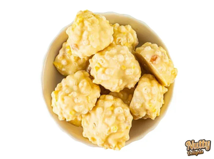 These mango and passionfruit clusters have the most amazing natural flavour that you will be super impressed with. They're crunchy too with a white chocolate and yogurt coating. These go best with cups of tea and friends.