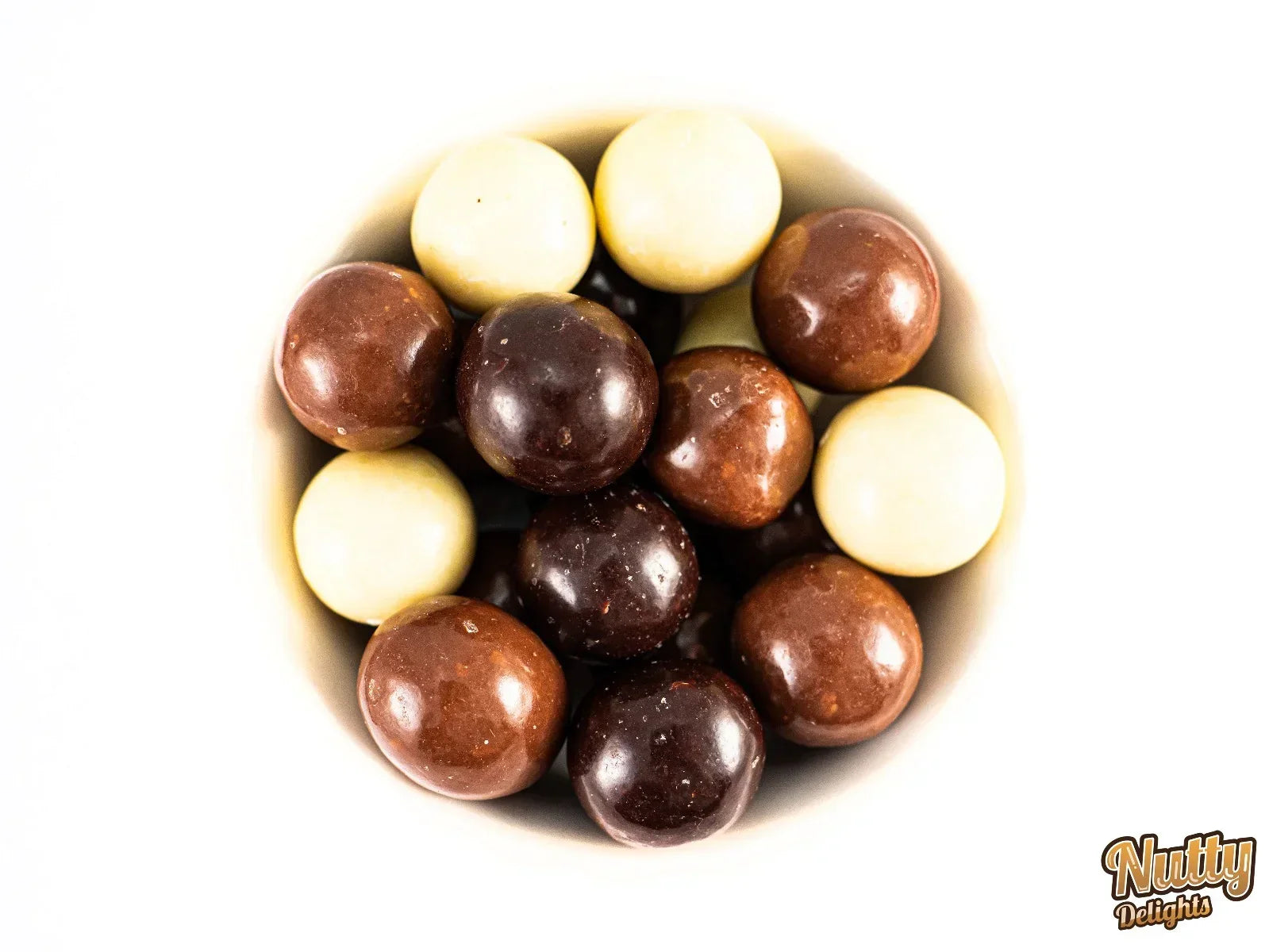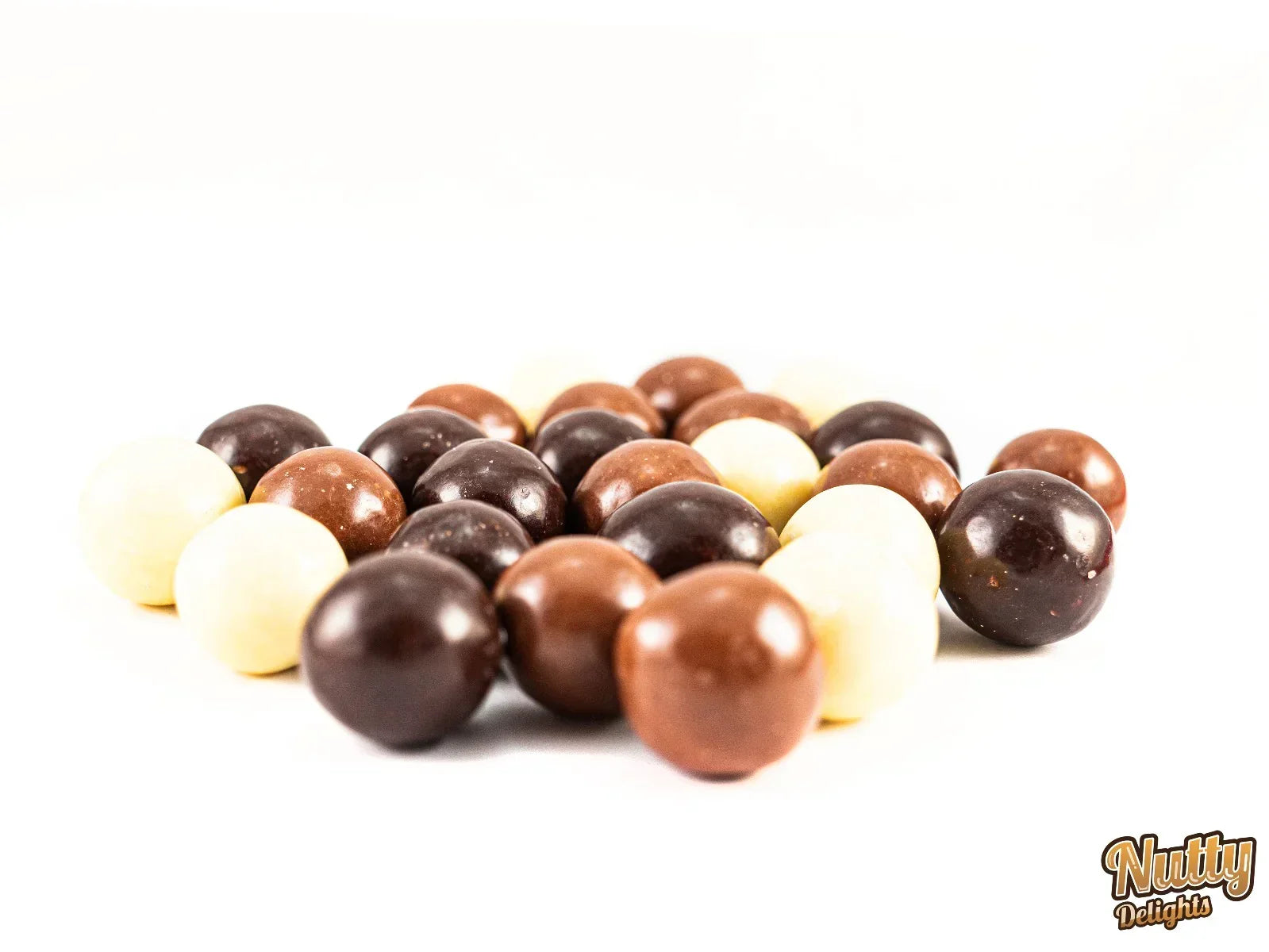 A blend of hazelnuts coated in dark, milk, and white chocolate for layered flavour and crunch.