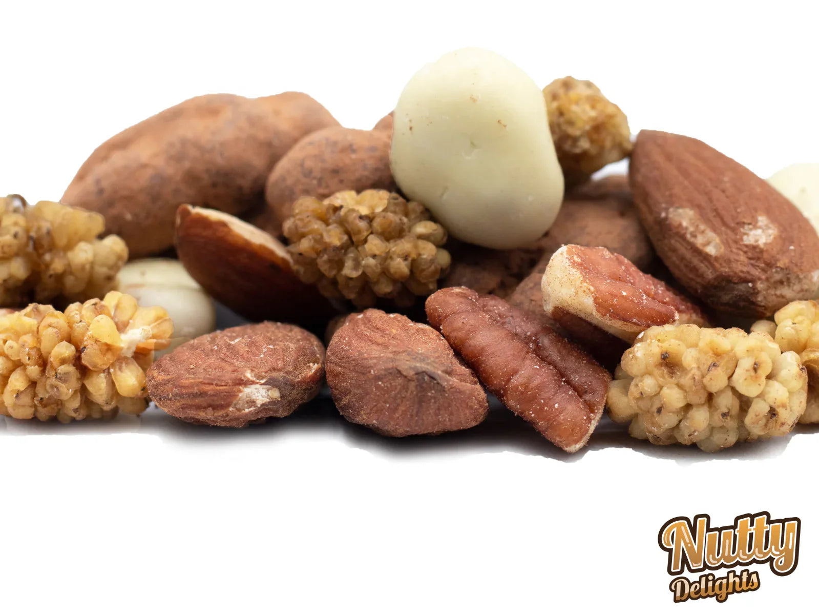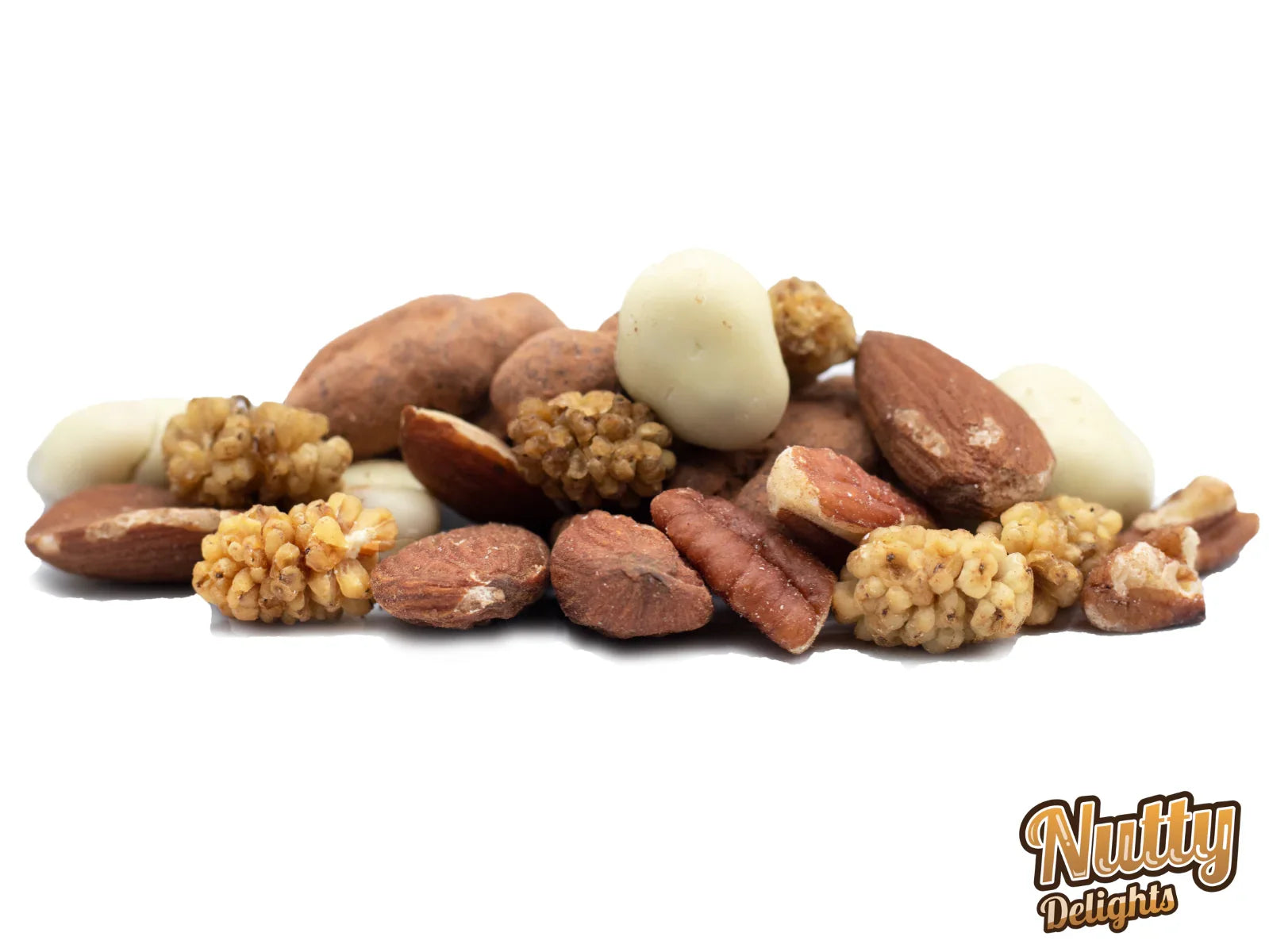 The stars of this mix are our rich Truffle Pecans, Yoghurt Cranberries, Mulberries, Roasted Almonds and Pecan Pieces. Mix all these guys together and your taste buds are in for a real treat! As the evenings get colder and longer this mix is great to cuddle up on the couch with and enjoy a movie.