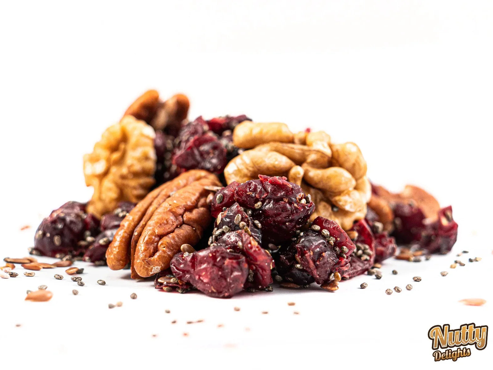 Nuts are the best source of Omega 3 and in this mixture you will find walnuts, almonds, raisins, pecans and cranberries.