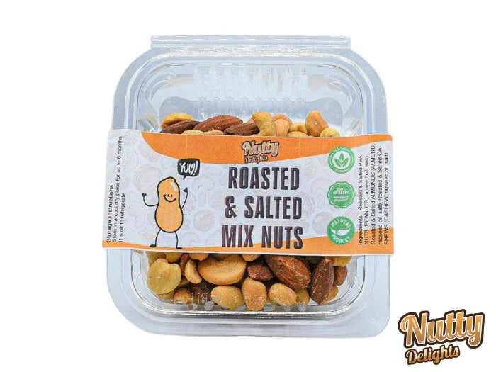 A classic mix of Roasted & Salted Cashews, Almonds & Peanuts.