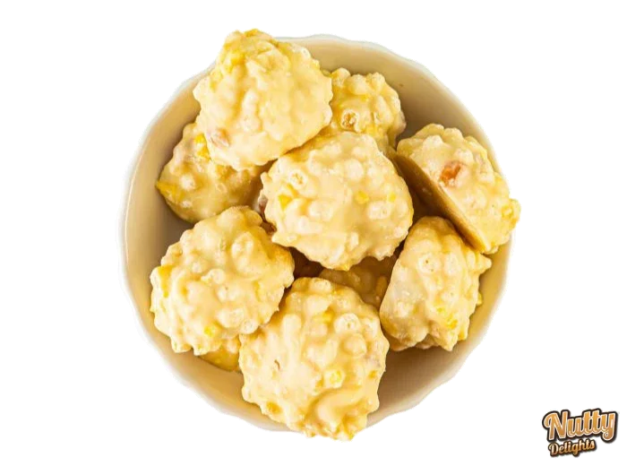 These mango and passionfruit clusters have the most amazing natural flavour that you will be super impressed with. They're crunchy too with a white chocolate and yoghurt coating. These go best with cups of tea and friends.
